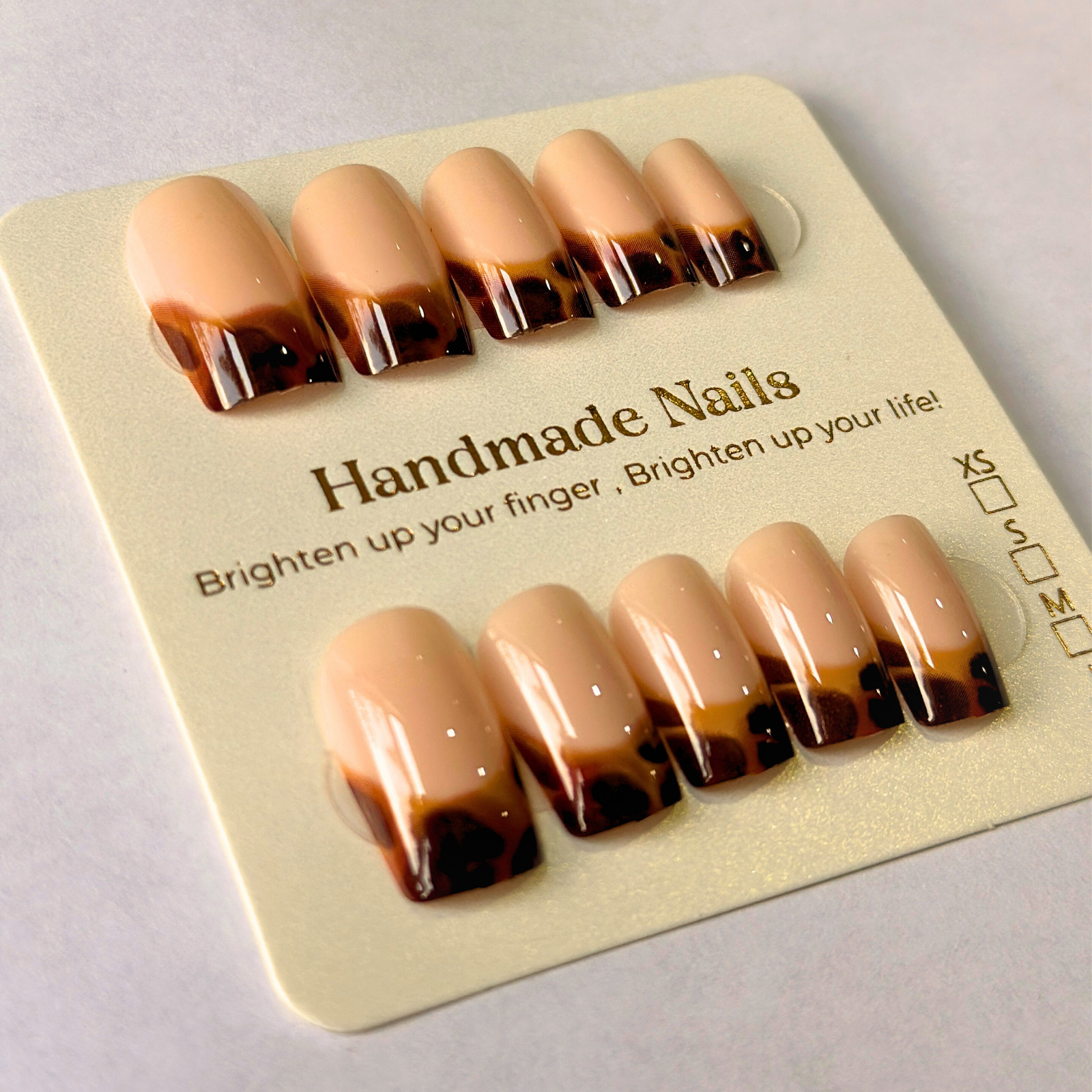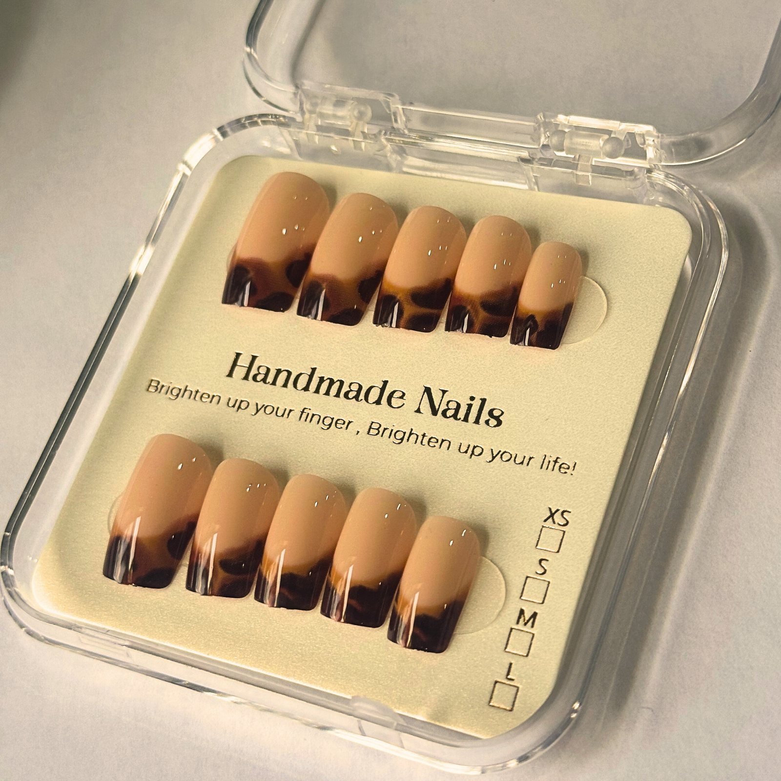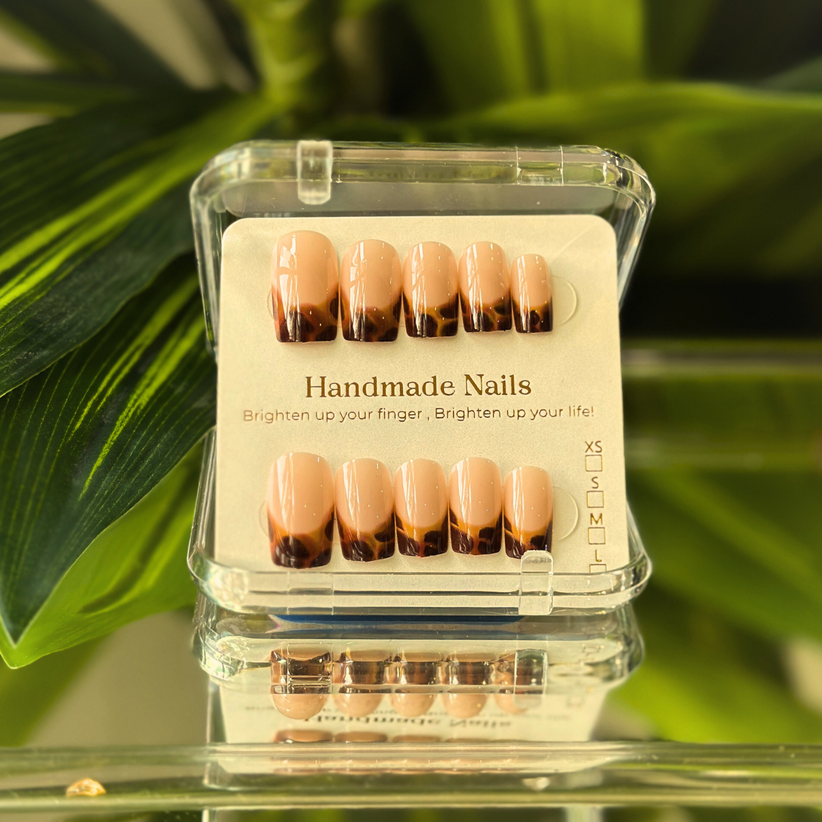 Your everyday French just got a fierce upgrade. Feline Frenchie is a short, stylish set that swaps the traditional white tips for bold leopard print - giving you the perfect mix of classy and untamed. With its clean base and animal-inspired detail, this set is made for those who like their glam a little wild.